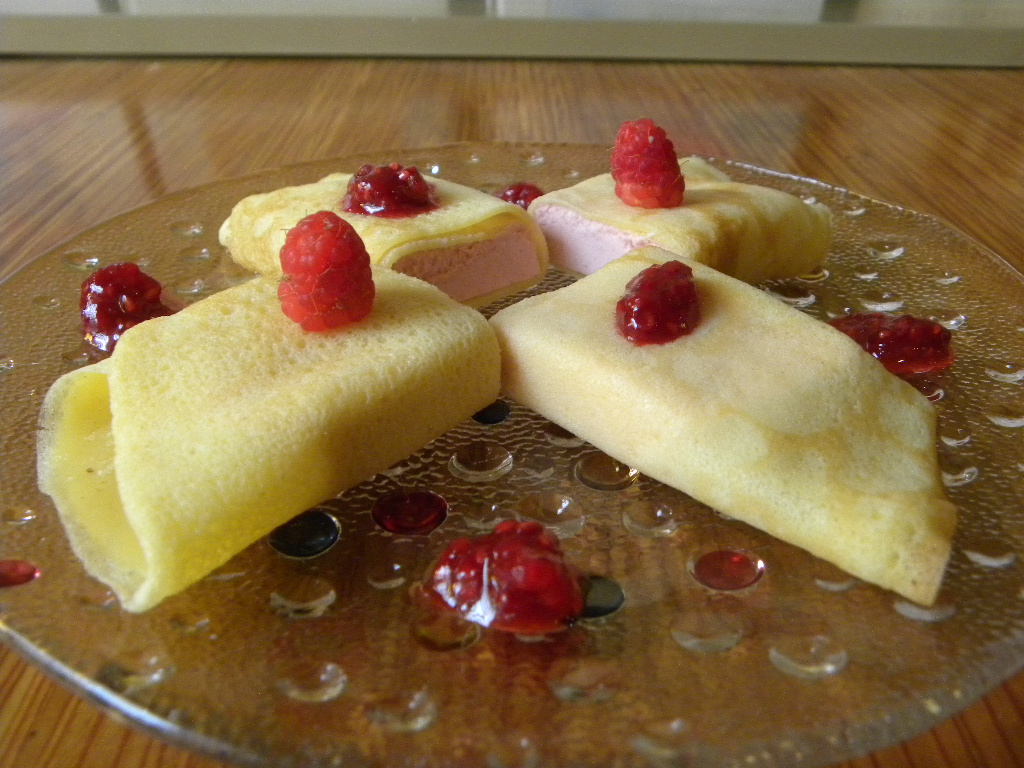 「ラズベリーのムース クレープ包み」と「パンナコッタ」を