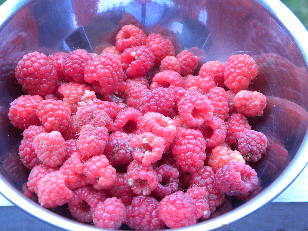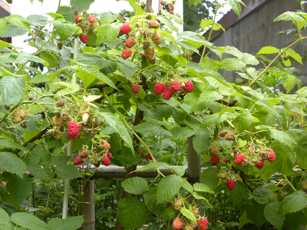 しかしこの写真、ここは本来は花壇だったのです。すっかりラズベリー畑になってしまいました。2本ほどバラが植えてありましたので、夢中になってると手足に棘が刺さります。
