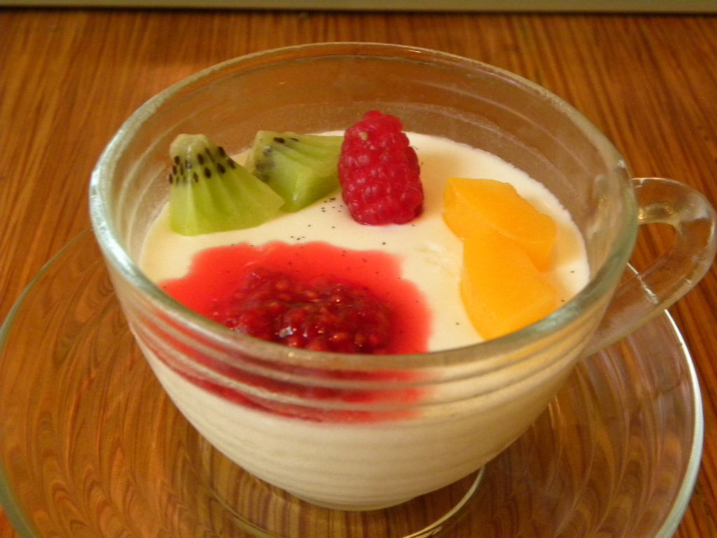 今日はパンナコッタを作りましたのでラズベリージャムを乗せてどうぞ♪